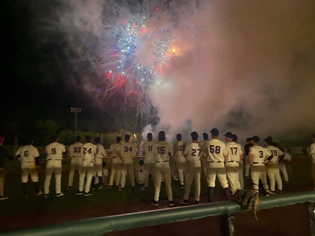 The home opener features an interdivisional game against the Doughboys of Johnson City. The initial game was a little chippy between the two collegian league teams. This was a back and forth battle with a lot of scoring opportunities early in the game. Our starting pitcher worked out of several jams and the bullpen held them down over the later innings of the game, The game was a little sloppy tonight. A constant drizzling rain did not help the quality of play. As the great Jim Hoff once stated, it generally is not the runs your starter gives up that beats you but the runs your bullpen gives up. That was the case tonight as the Flyboys out bullpenned the Doughboys. Fly Flyboys Fly. A robust fireworks show followed the game. Fans and players alike enjoyed a really good show. We go for the sweep in this two game set tomorrow night!